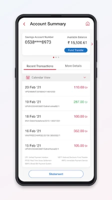 • Missed Call service for getting Account Balance or last few Transactions over SMS (available to Customers registered for this service).