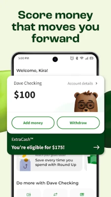 There’s a small monthly membership fee that gives you full access to our features, including ExtraCash™, Goals, & Surveys.(1) With Dave, you can monitor your money 24/7 & make transactions securely.