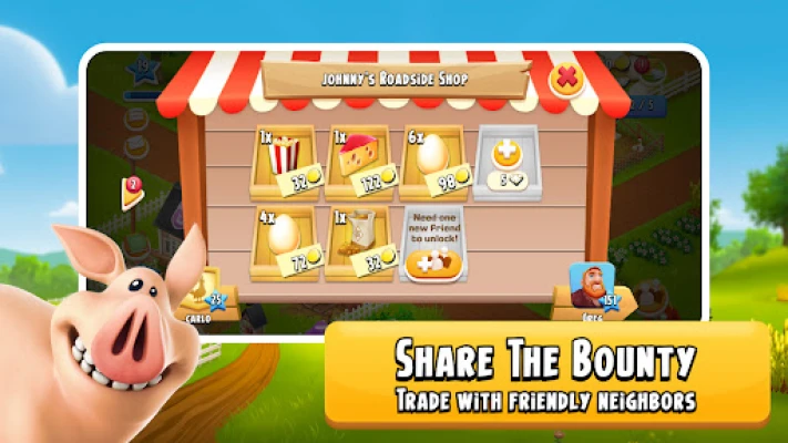 Expand your farm simulator experience and play with friends. Join a neighborhood, or create your own with up to 30 players. Exchange tips and help each other create amazing farms! Play with friends in this farming simulator to build, trade, and fish together.